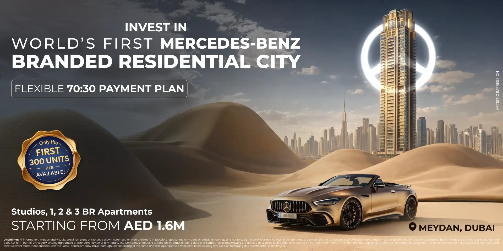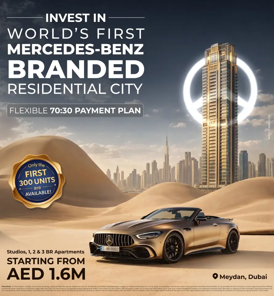 Mercedes-Benz Branded Residential City is a one-of-a-kind ultra-luxury development in Dubai, designed in collaboration with Mercedes-Benz and developed by Binghatti.